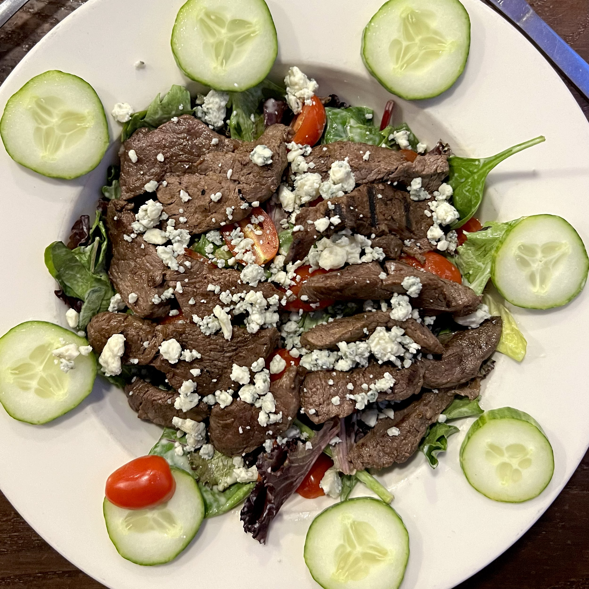 FILET ME UP January 20, 2025 0 steak house salad with filet tips, spring mix, cucumbers, cherry tomatoes, blue cheese crumbles and crispy tortilla chips served with avocado ranch dressing Continue reading...